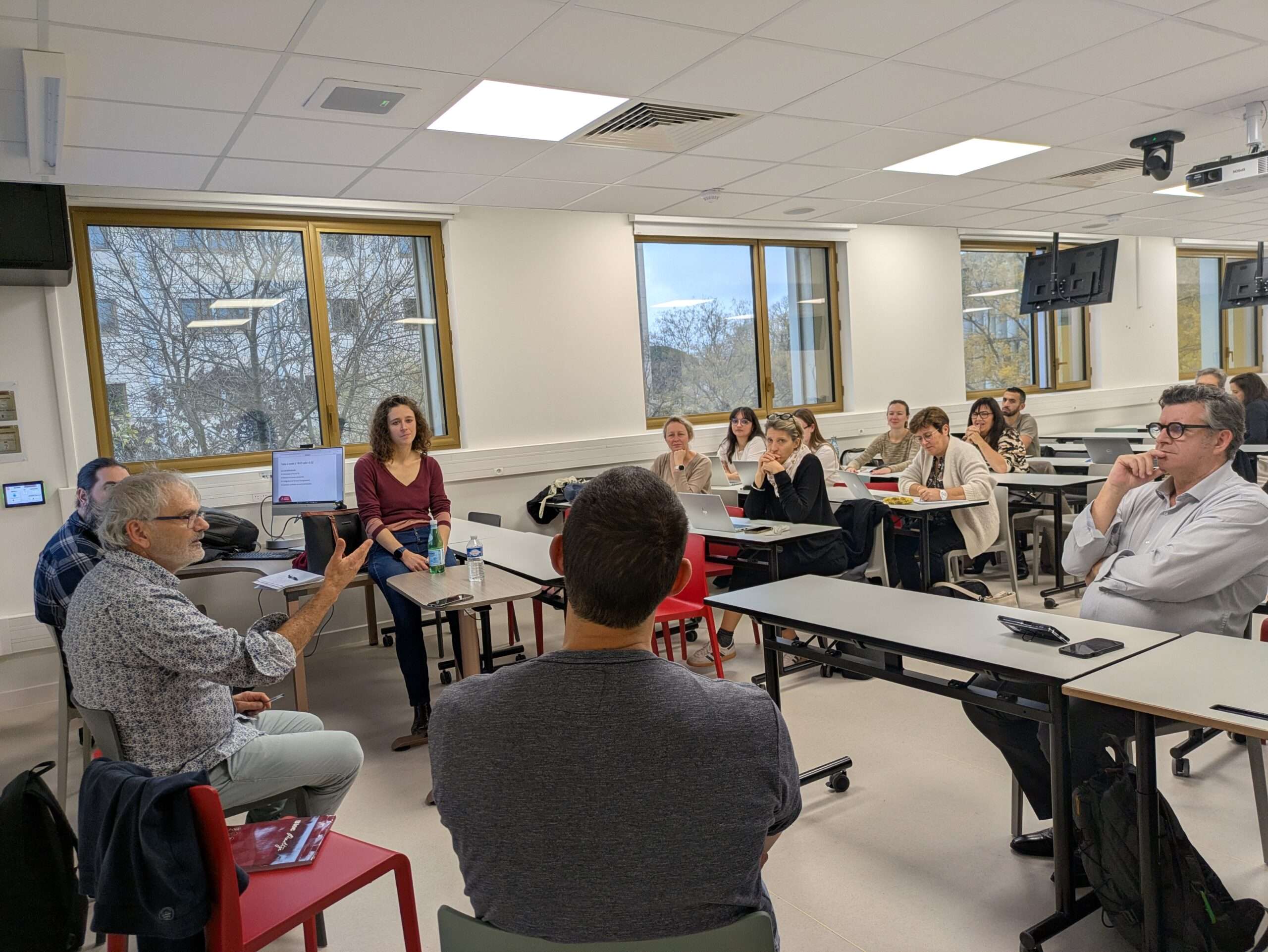 Les usages étudiants et les enjeux pédagogiques ont ensuite été abordés par Robin Broult, étudiant en pharmacie à Montpellier et en M2 Ingénierie de la Santé, avant une présentation dédiée à l’IA et à la pédagogie à l’UFR de Pharmacie par Maud Harnichard, ingénieure pédagogique, et le Dr Maxime Louet (IBMM).