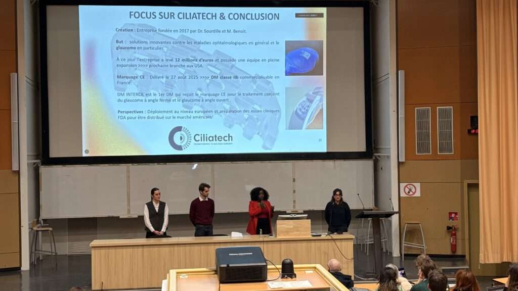 Les présentations ont donné lieu à des échanges riches et constructifs, témoignant de l’engagement, du professionnalisme et de la capacité des étudiants à répondre à des enjeux concrets d’innovation en santé. La soirée s’est conclue par un vote du public, permettant de valoriser le travail collectif des différents groupes.