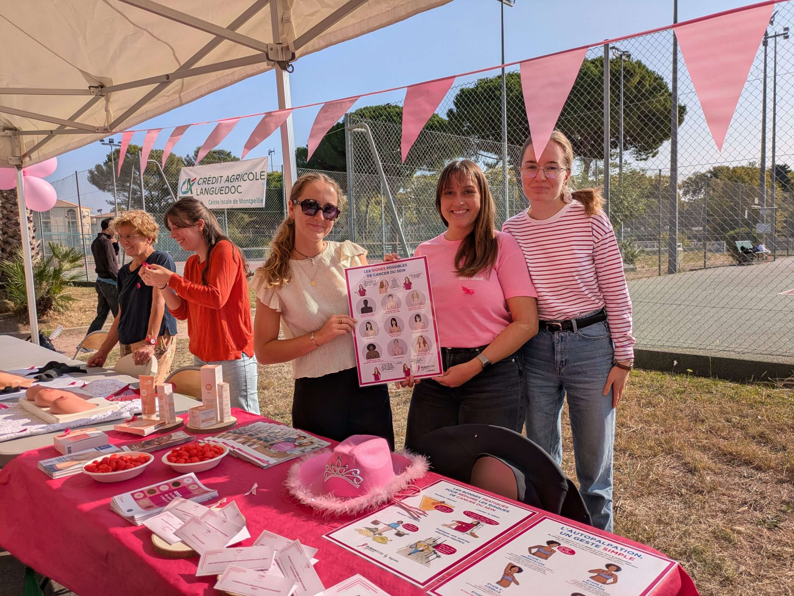 La mobilisation s’est poursuivie le 14 octobre avec le tournoi des balles roses, accompagné de nombreuses animations dédiées à la prévention et à la sensibilisation : stands d’information sur le dépistage et le lien entre tabac et cancer, atelier d’apprentissage de l’autopalpation, vélo smoothie, animation musicale et tombola solidaire.